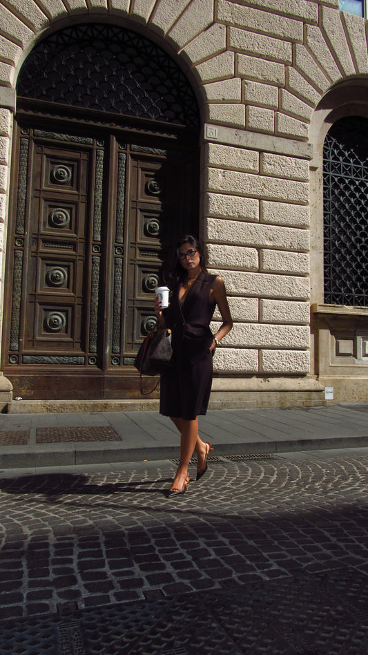 Giacca gessata con spilla