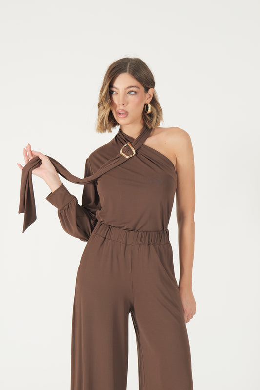 Maglia monospalla con applicazione oro