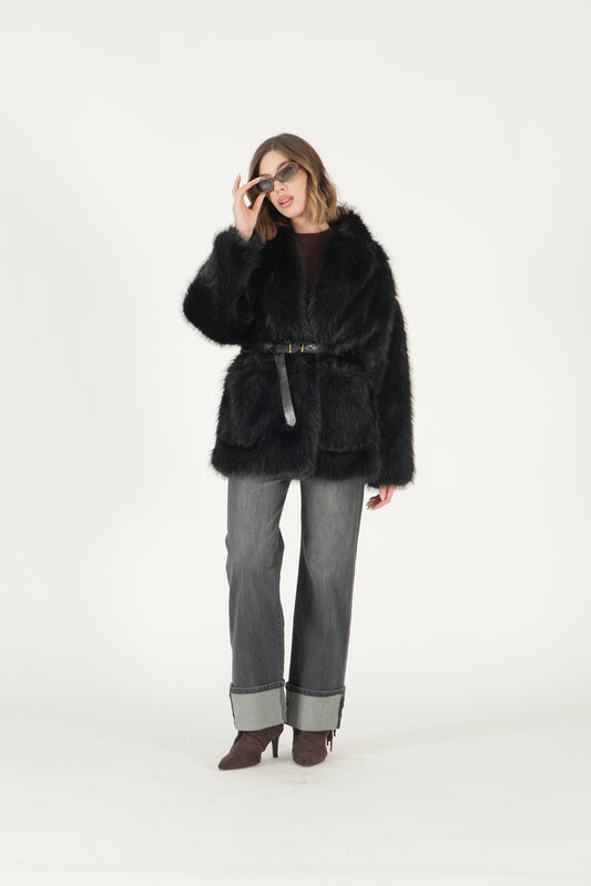 Eco pelliccia con cintura