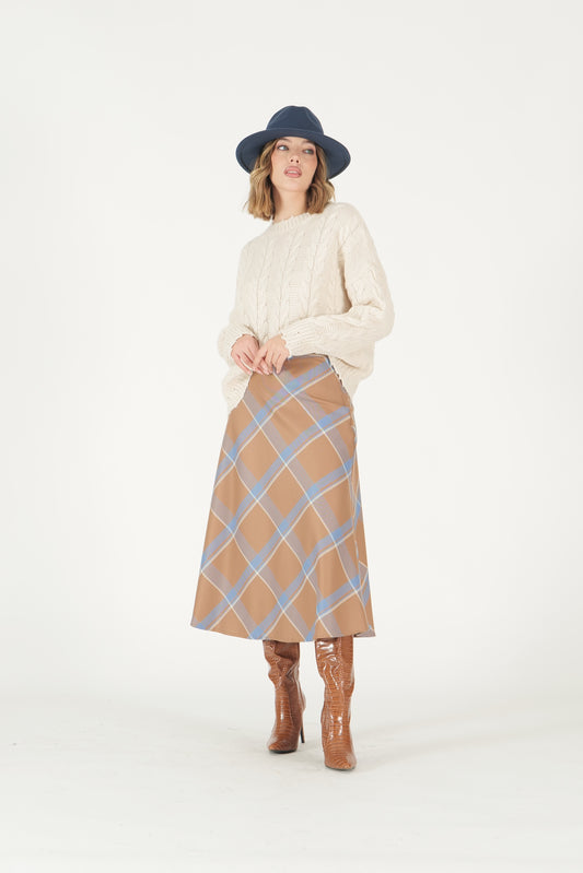 Gonna midi tartan con dettaglio pizzo