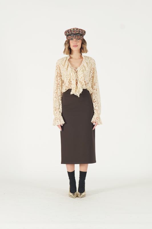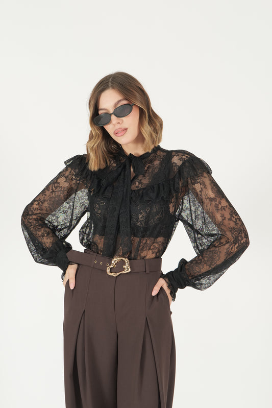 Blusa con fiocco in pizzo