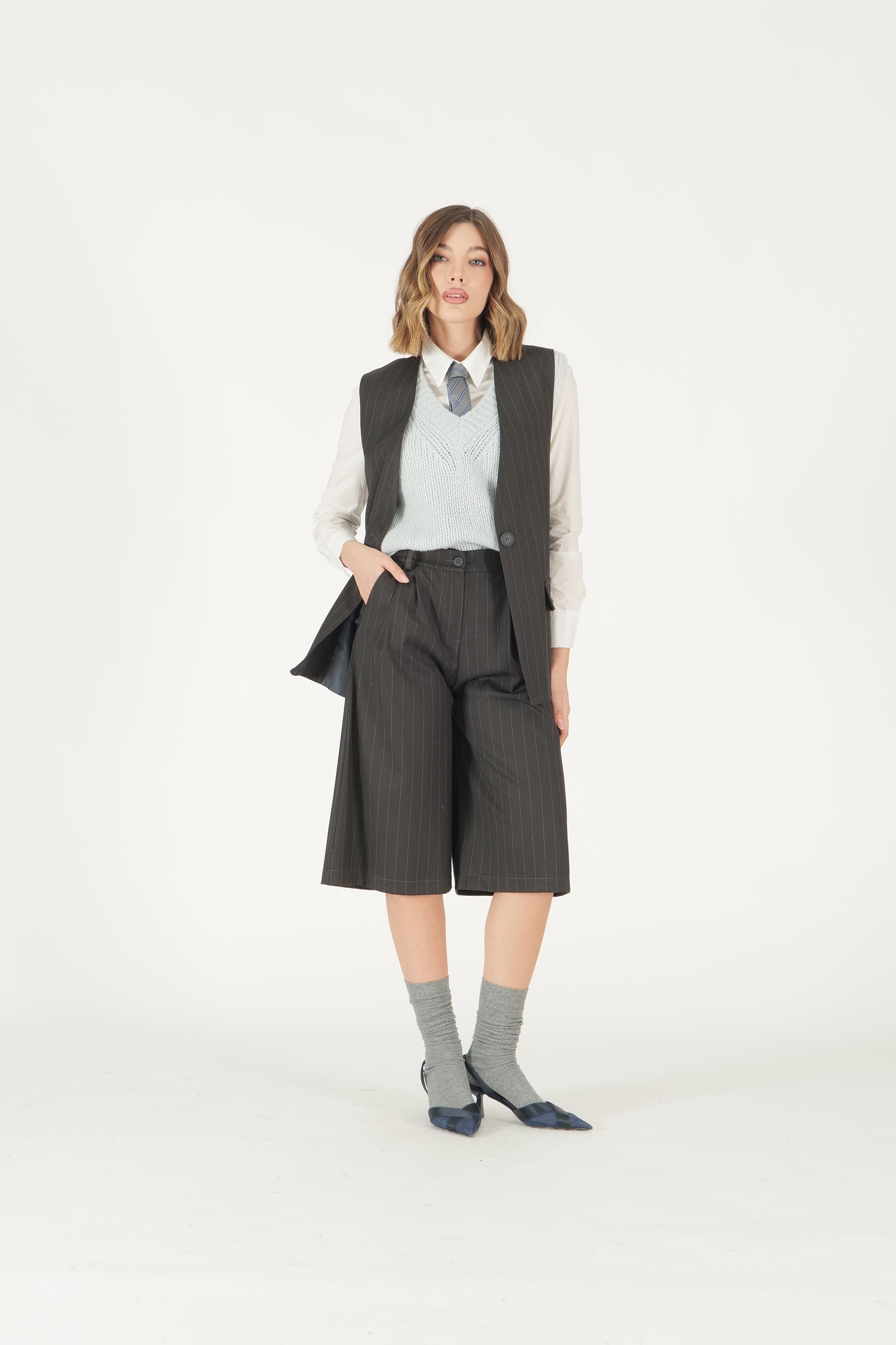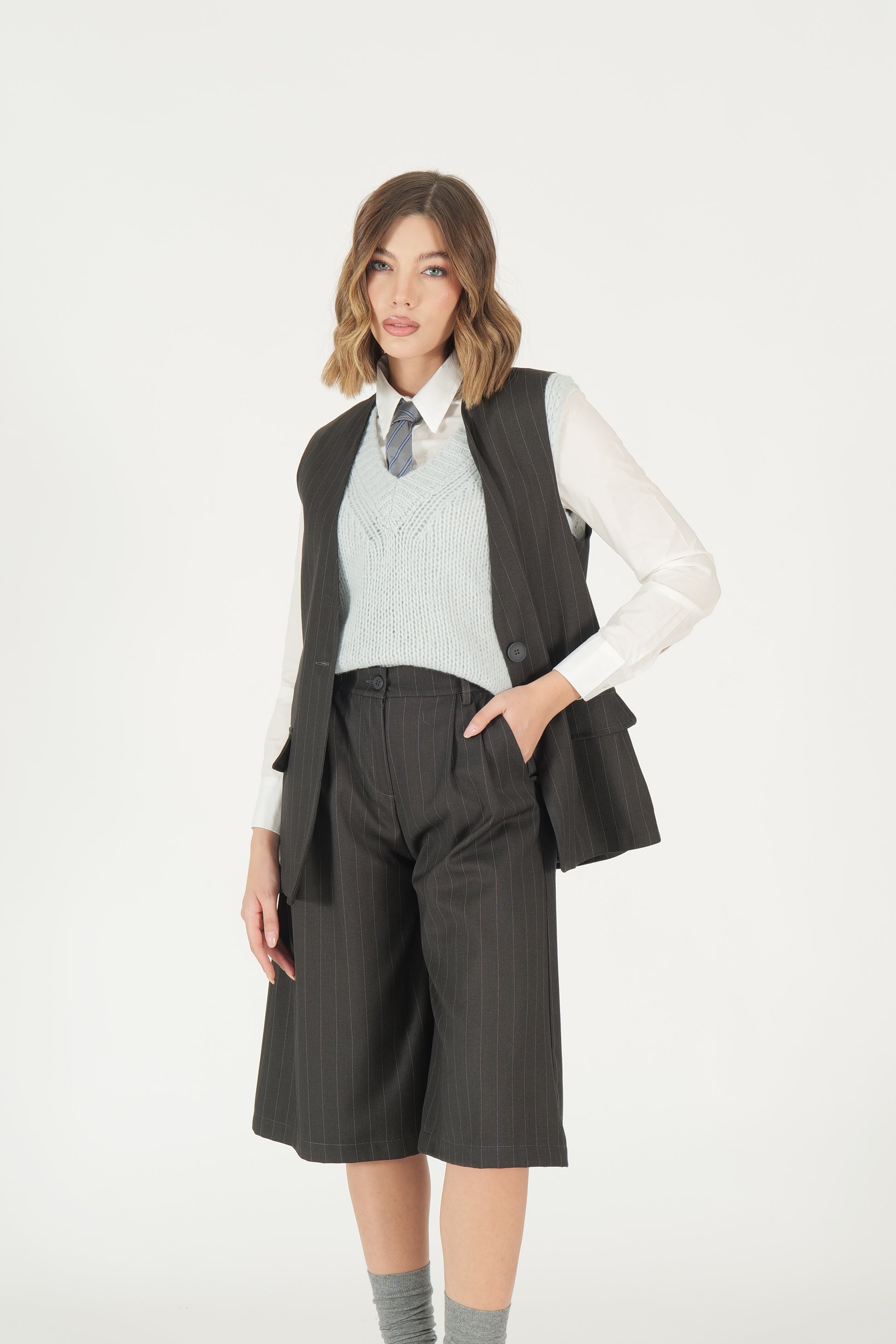 Coordinato gessato gilet e bermuda