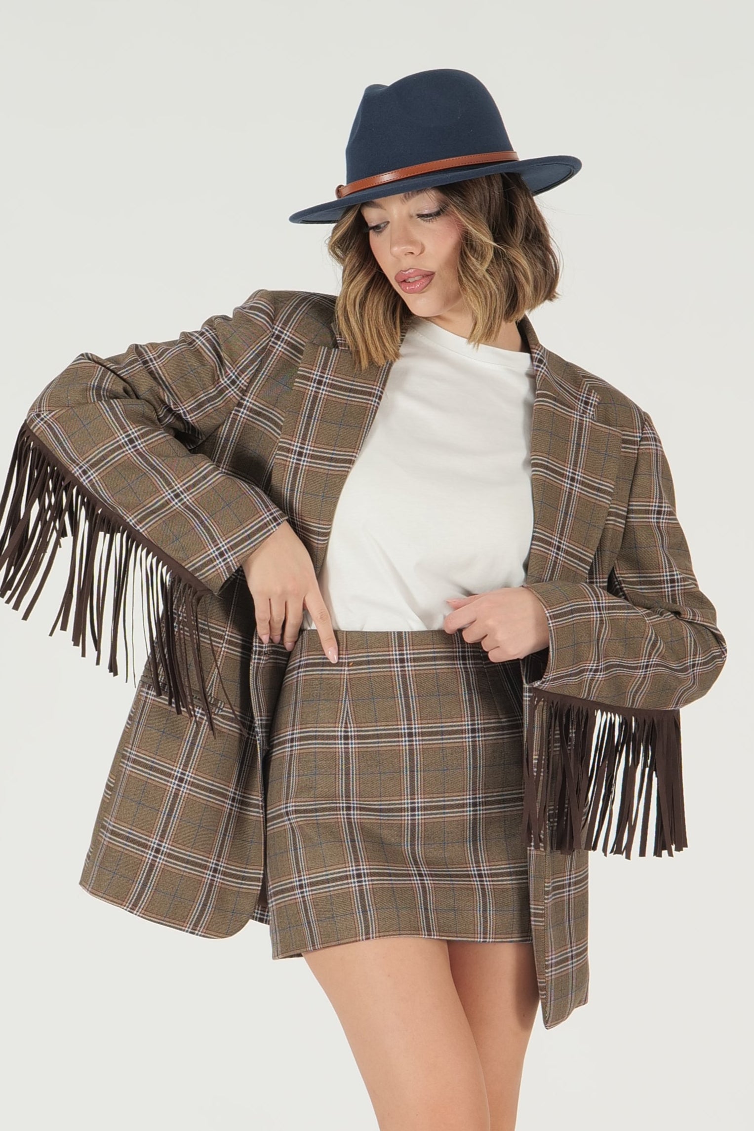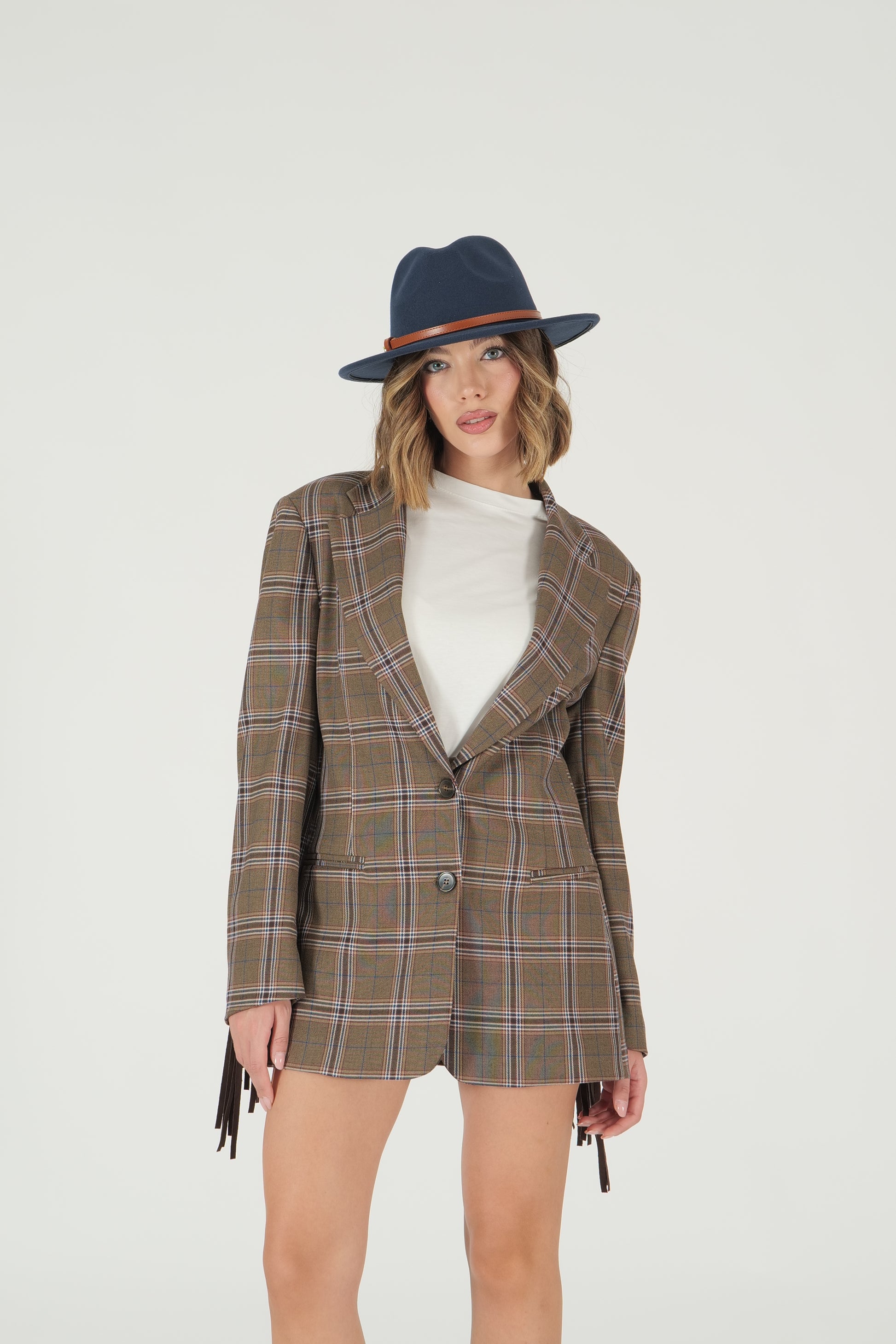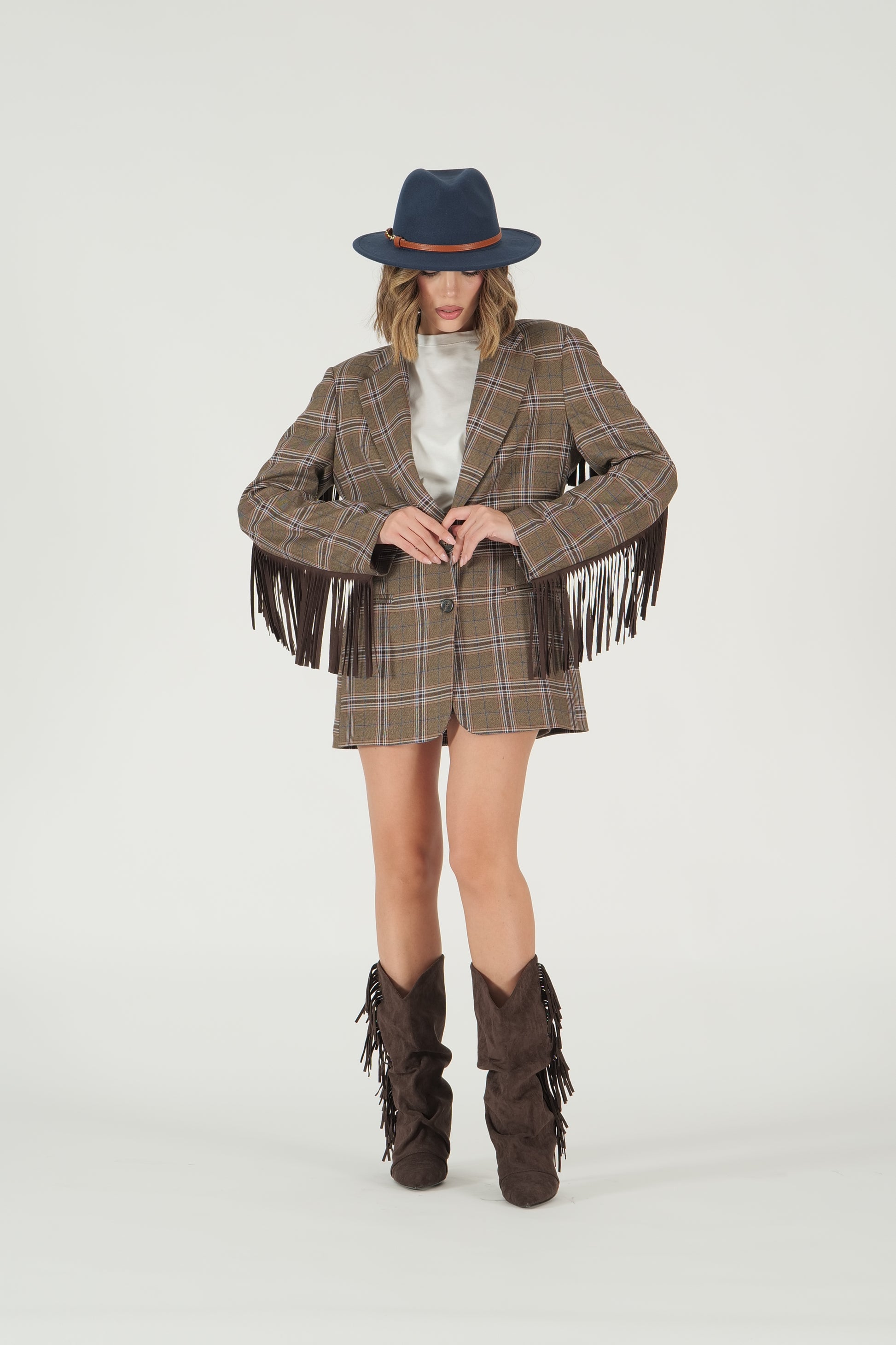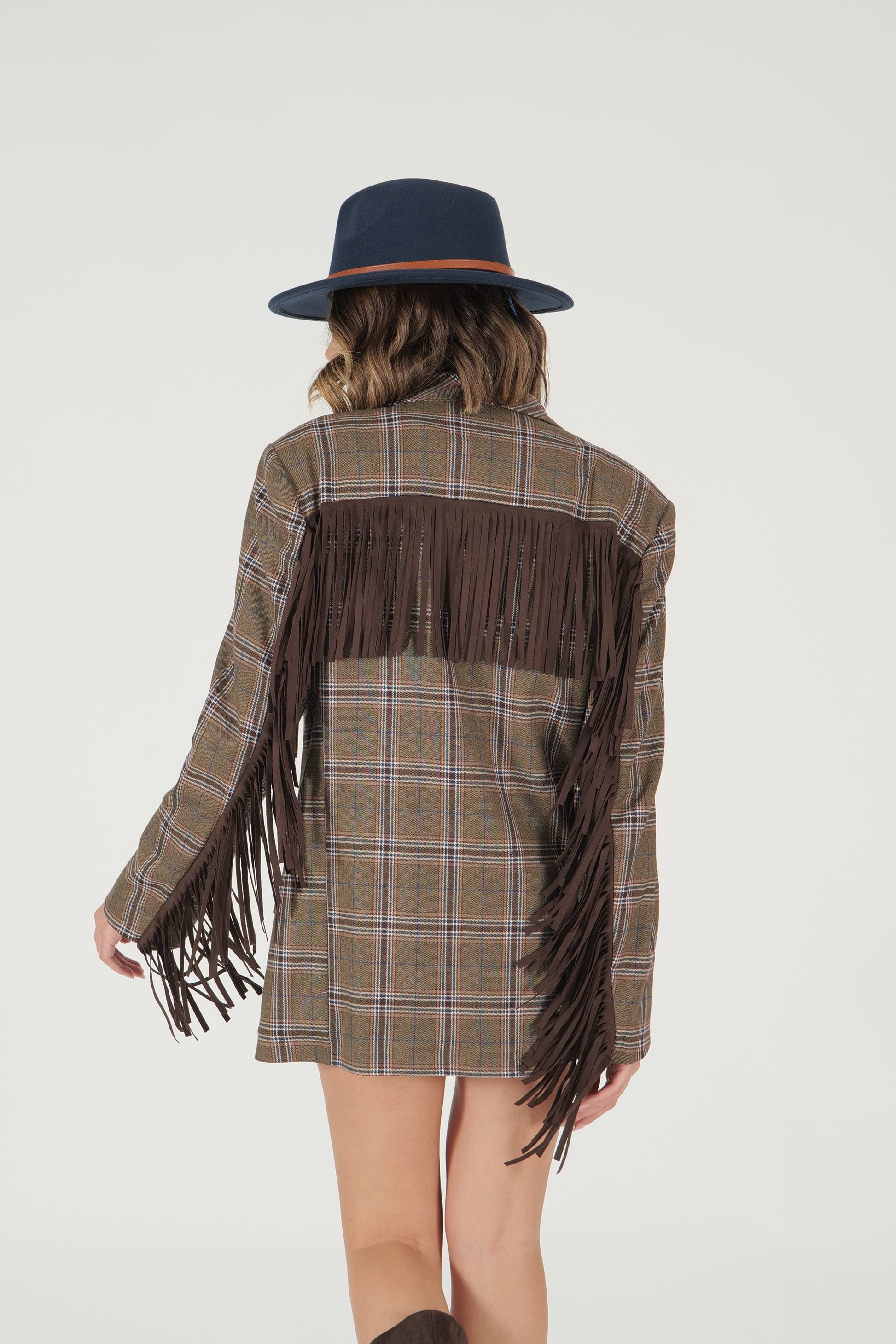 Giacca a quadri con frange