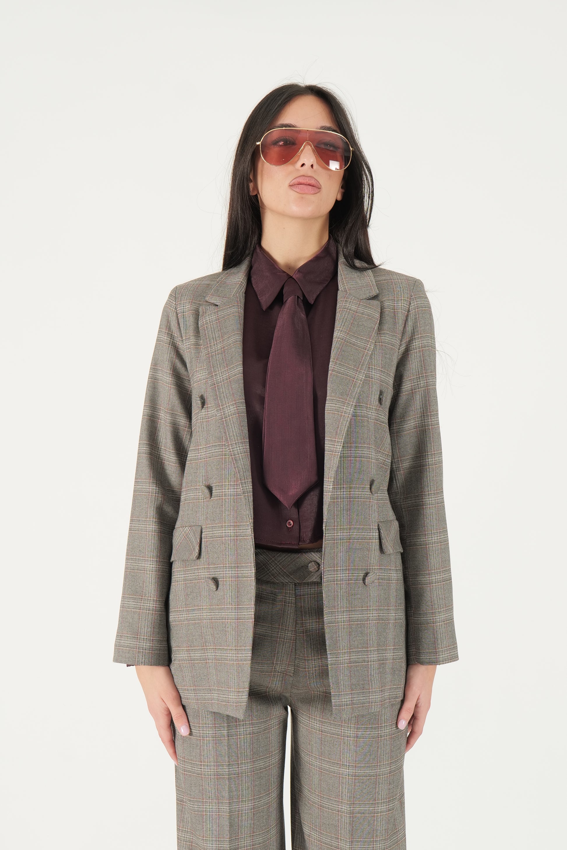 Giacca a quadri doppiopetto (bottoni decorativi)