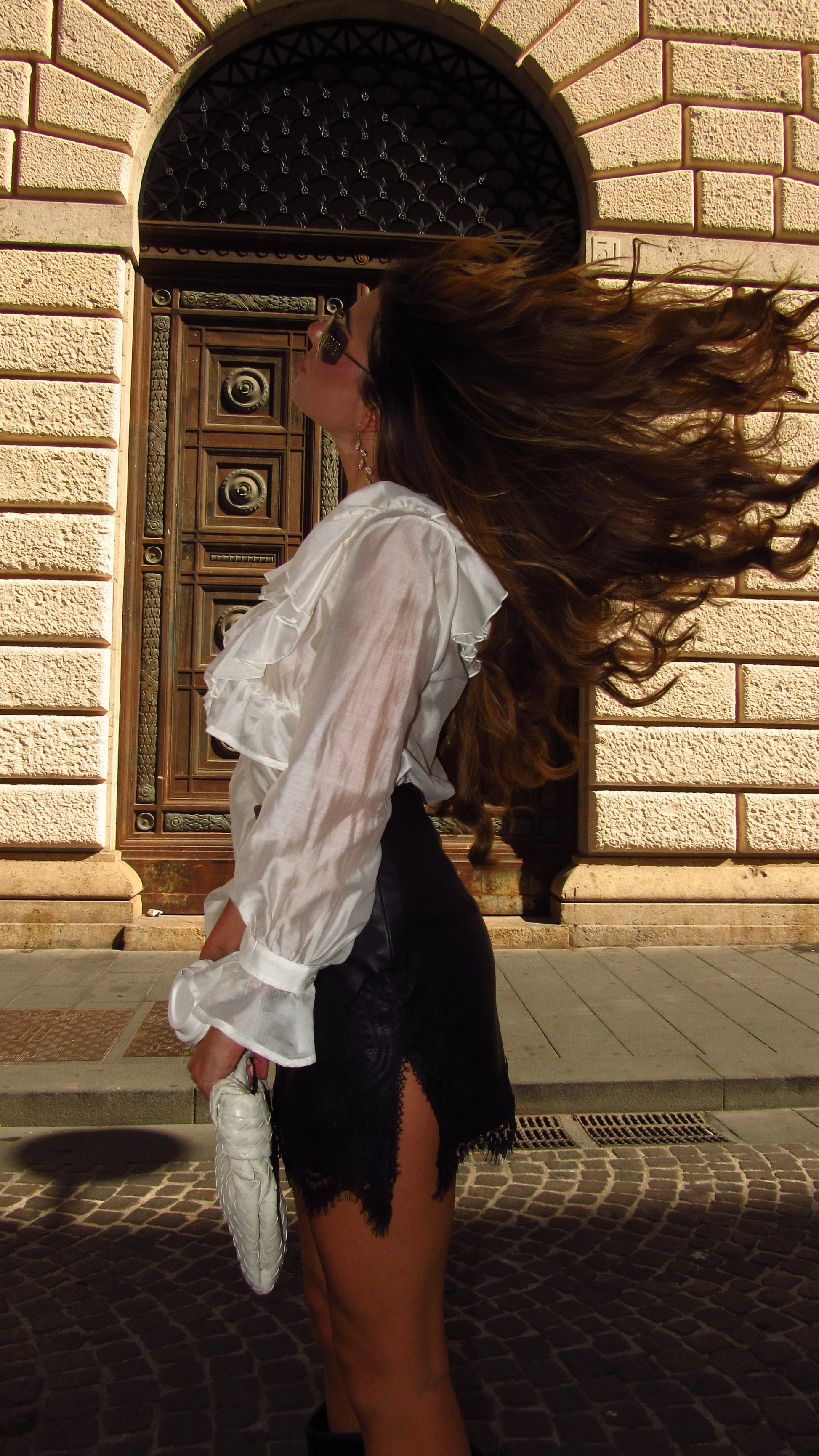Gonna in pelle con dettaglio pizzo e spacco laterale