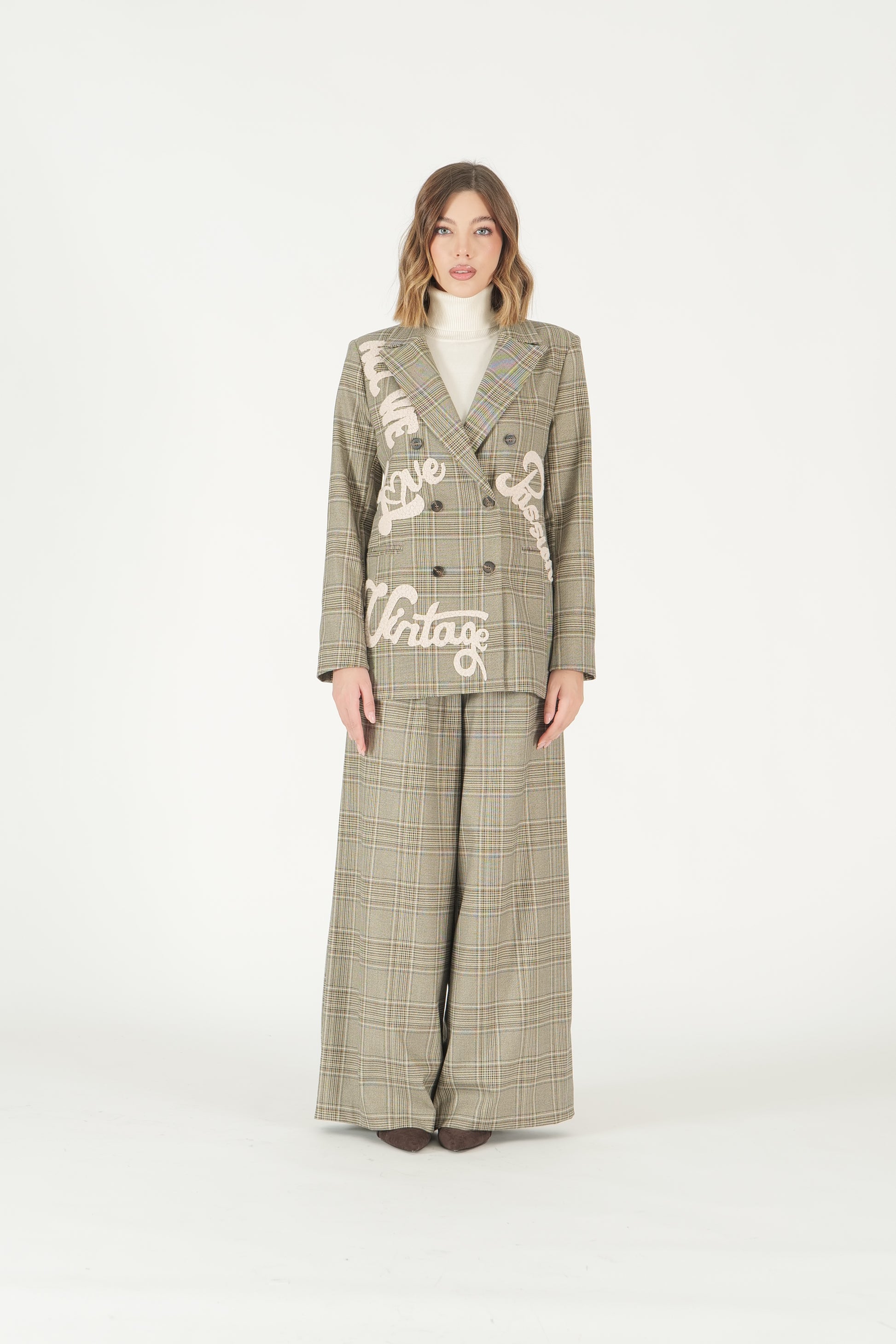 Pantaloni palazzo a quadri con pinces